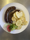 - 2 Wildscheinbratwürste mit Kraut oder Pommes