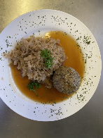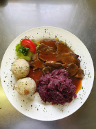 - Wild boar goulash with bread dumplings and red cabbage
