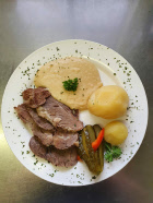 - Cooked beef with horseradish sauce and potatoes